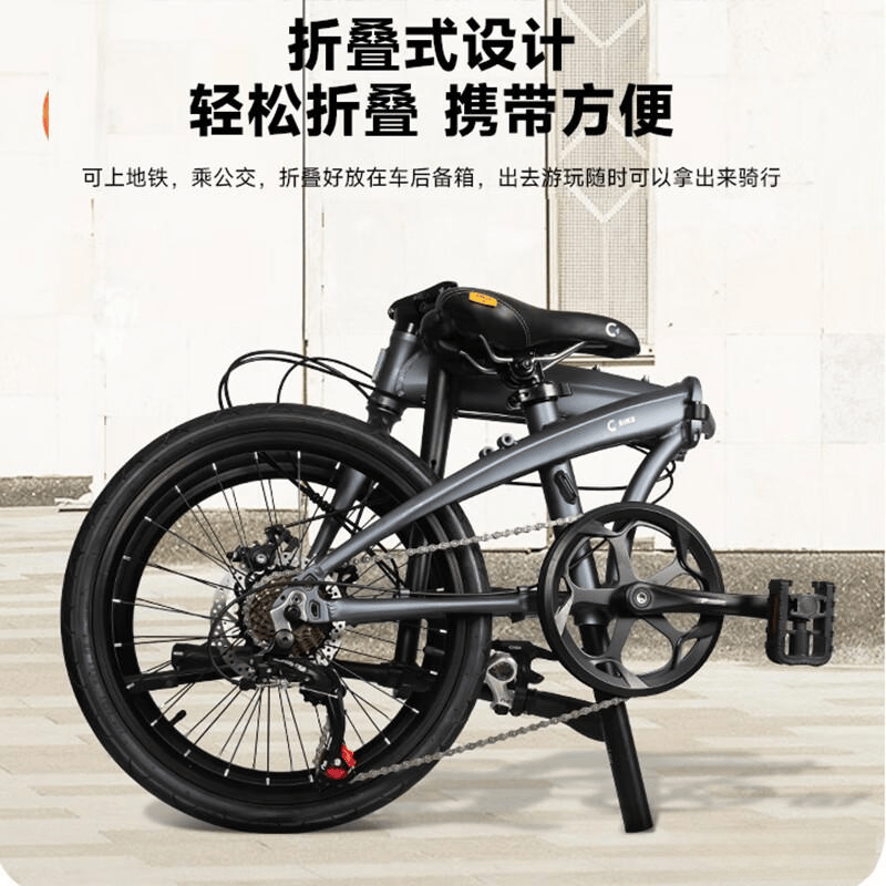 采用轻便折叠设计,这款自行车在城市通勤或短途旅行时尤为方便,轻松折叠后仅需0.5平方米的空间,甚至能放入后备箱。在繁忙的早高峰,不再需要拥挤的公共交通,骑行出行更省心,快捷自在。无需担心存放问题,让出行更加灵活随性。