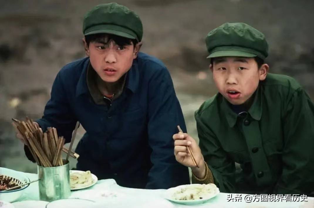 1985年的西安街头,两个年轻的兄弟正在吃凉皮。这是西安的传统美食,尤其适合夏天食用。两个小兄弟戴着80年代流行的绿色军帽,穿着朴素的蓝色和绿色军装,体现了那个年代的简朴和艰难。不过,随着市场经济的兴起,80年代后期人们的穿着逐渐多样化,开始告别单调的衣服。照片中的这两位小哥坐在桌前吃凉皮,桌上摆放着辣椒油,尽管西安人通常喜爱辛辣,但他们的碗里似乎没有辣椒油,或许他们不太喜欢辣味。